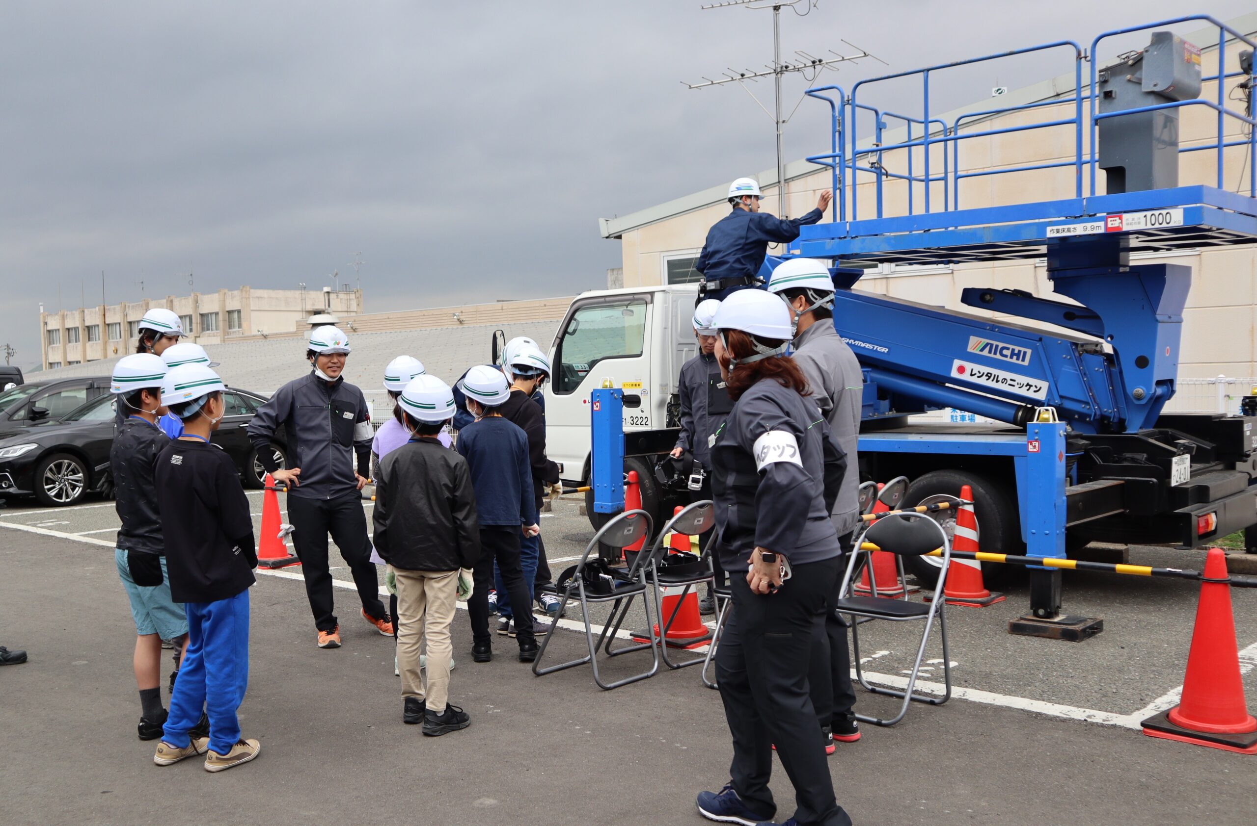 高所作業車で高い所まで登ったり、重機の運転席に乗ったり、子どもたちはとても楽しそうでした。