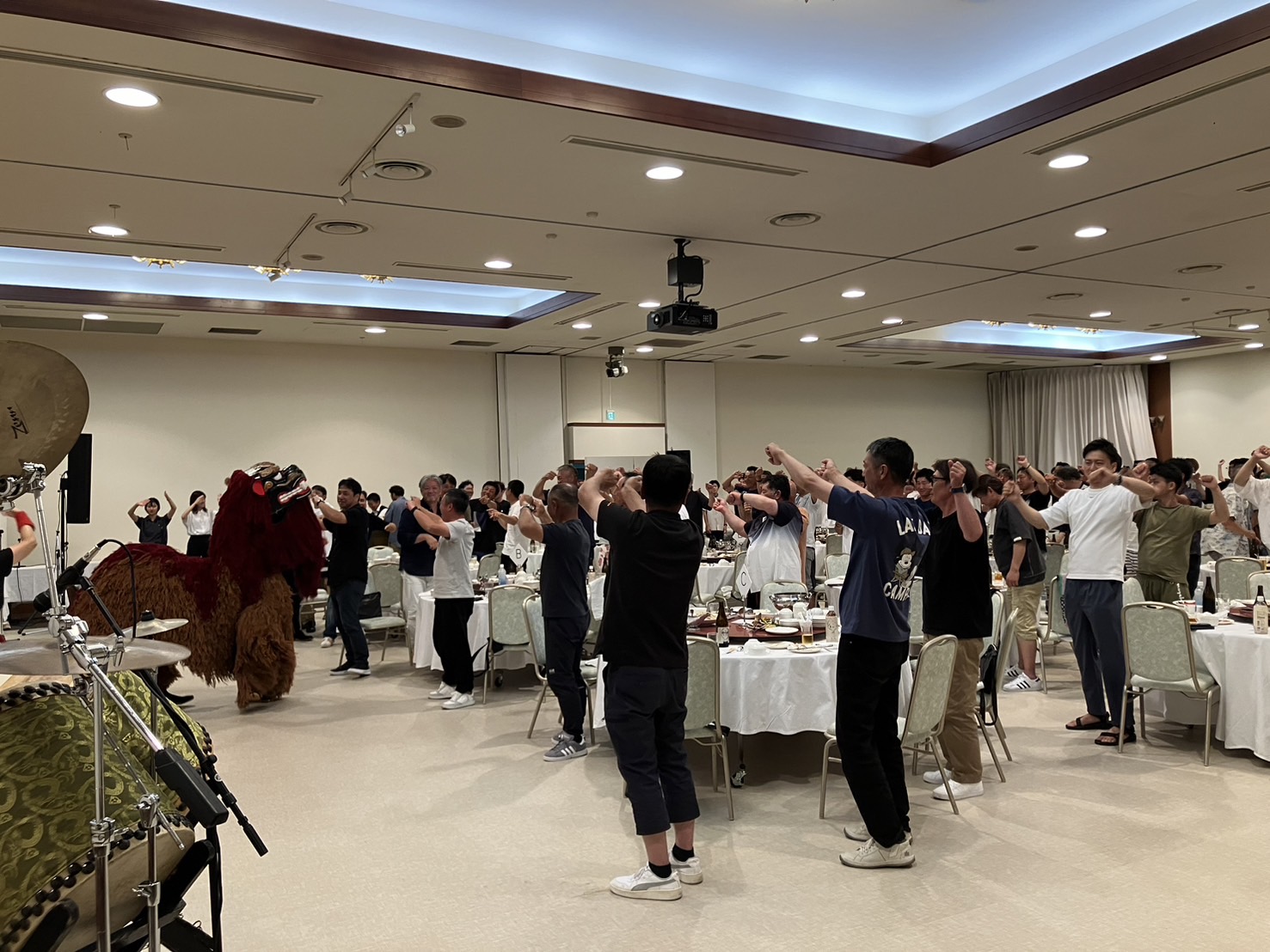 琉星太鼓さんの余興でシーサーと触れ合ったり、