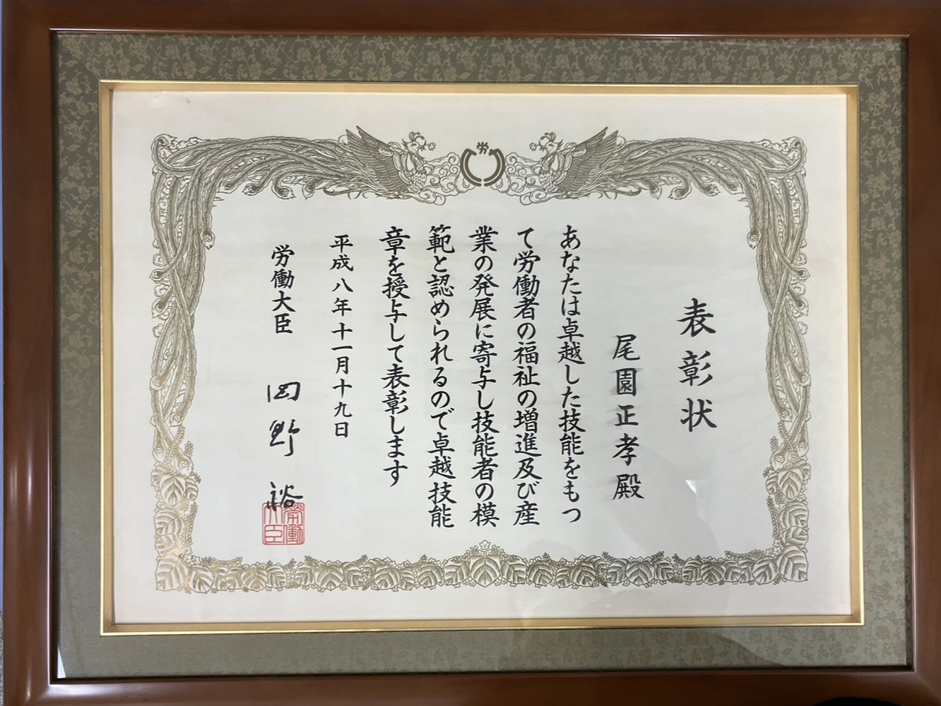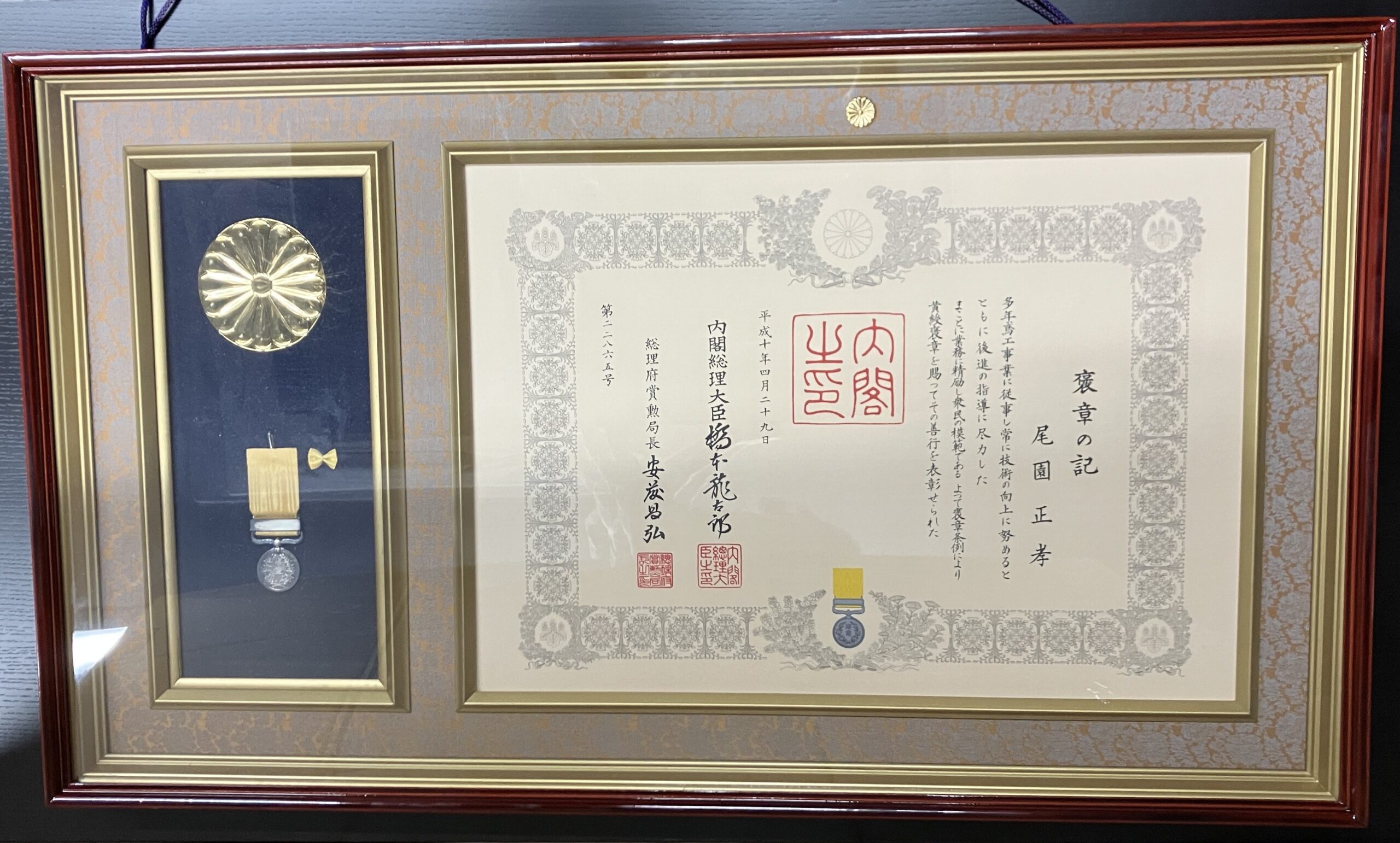 平成10年度春の褒章(黄綬褒章)を受章いたしました